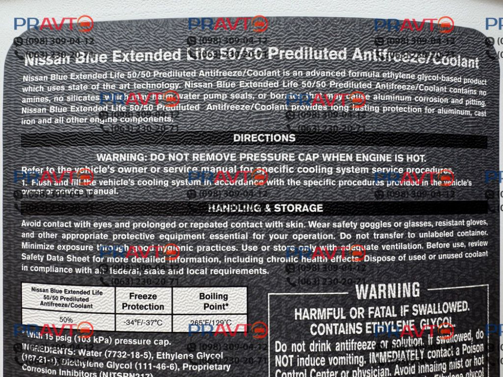 Стабільна температура двигуна безпосередньо визначає його ресурс та ефективність роботи. Замовляючи оригінальну охолоджувальну рідину Nissan Extended Life L255 у магазині ПРАВТО, ви надійно захищаєте мотор від закипання і внутрішньої корозії. Цей преміальний продукт створений спеціально для автомобілів Nissan та Infiniti, забезпечуючи ідеальне тепловідведення в будь-яких кліматичних умовах.