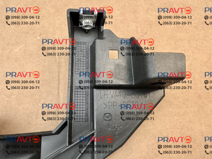 Кронштейн Mazda VA4050160A, VA40-50-160A виготовлений із технічного пластику PP-GF30 — це поліпропілен, посилений 30% скловолокна. Такий матеріал застосовується Mazda для елементів кріплення завдяки підвищеній жорсткості, стійкості до вібрацій і стабільній формі при перепадах температури. Пластик не деформується з часом, зберігає міцність і надійно утримує фару навіть при активній експлуатації автомобіля.