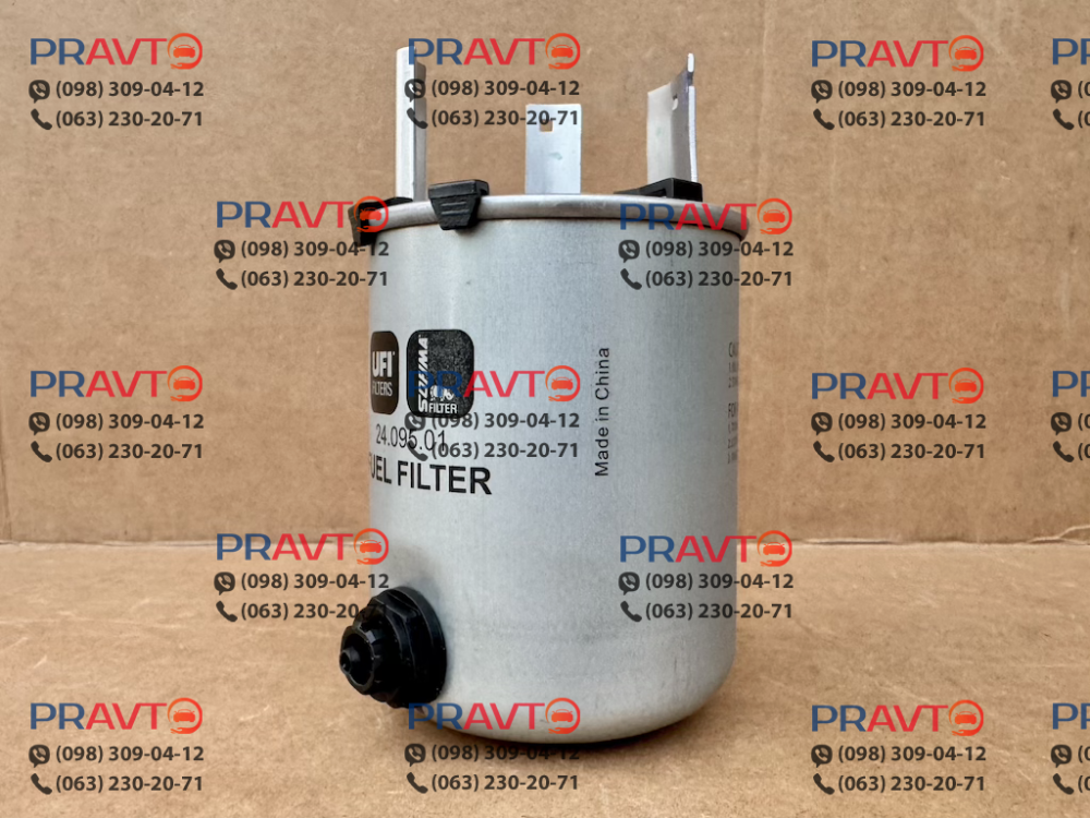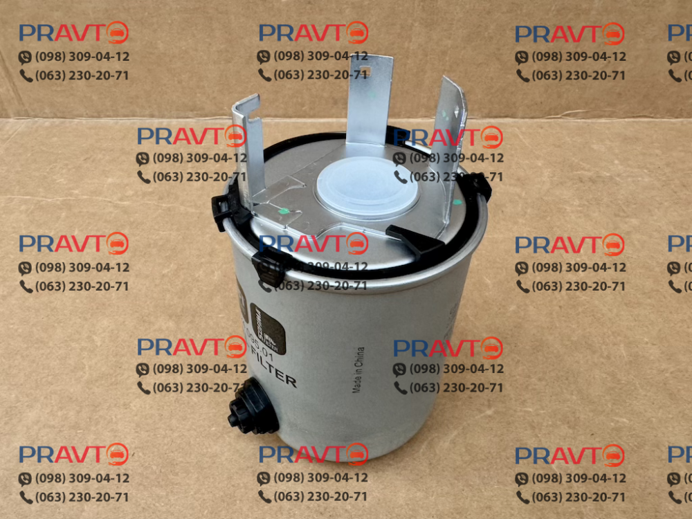 Зверніть увагу на важливий нюанс поставки: новий оригінальний фільтр поставляється без датчика наявності води. Це стандартна заводська практика. Електронний сенсор є багаторазовим пристроєм і переставляється зі старого фільтра. Він встановлюється у верхню частину корпусу і кріпиться за допомогою спеціального фіксатора (скоби). Посадкове місце повністю відповідає штатному датчику, тому заміна не викликає складнощів.