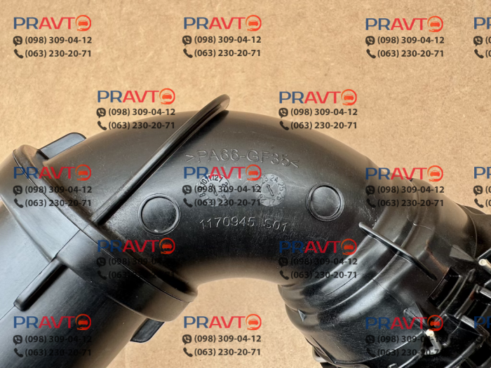 Патрубок Nissan 144605NA0B, 14460-5NA0B виготовляється з інженерного пластику PA66-GF35 — поліаміду (нейлону), посиленого 35% скловолокна. Такий матеріал відрізняється високою термостійкістю, жорсткістю і стійкістю до вібрацій. PA66-GF35 використовується Nissan саме в навантажених зонах наддувної системи, оскільки він не розм'якшується від температури, не розтріскується і не деформується при сильних перепадах повітря після роботи турбіни. Це гарантує стабільну та безпечну подачу повітря в двигун.