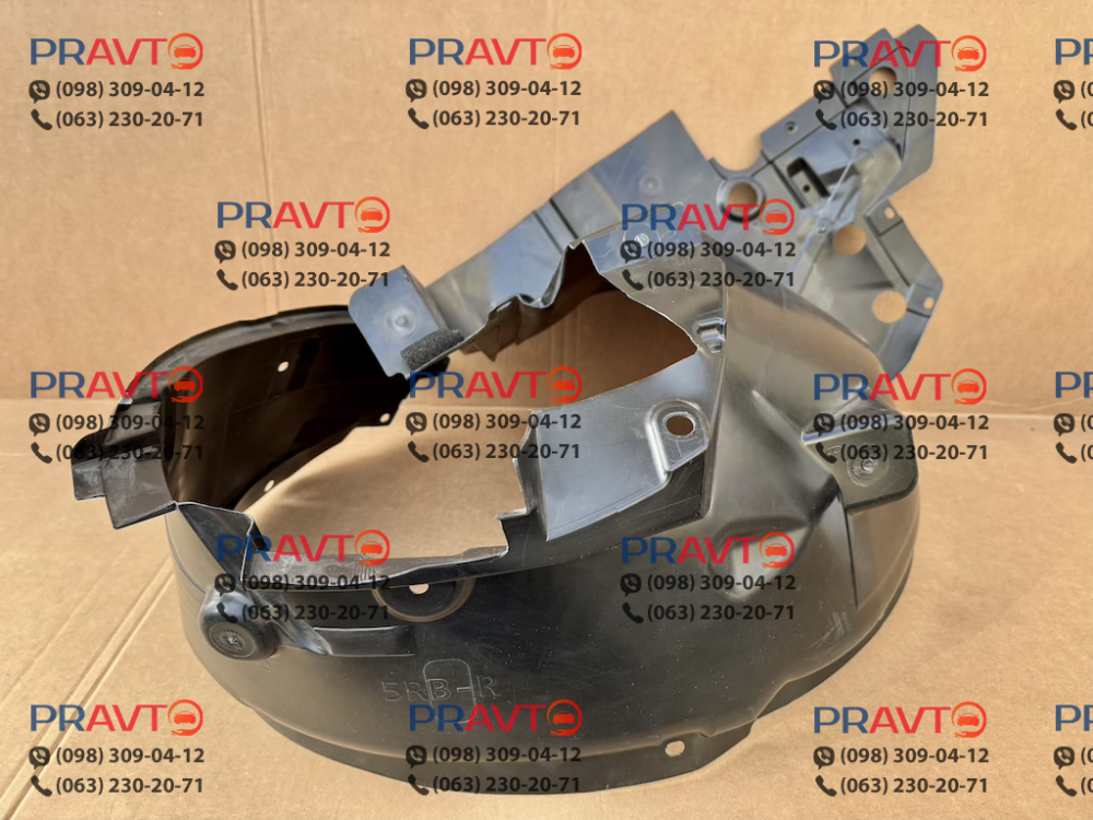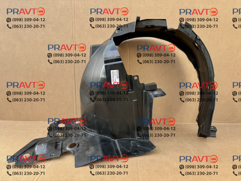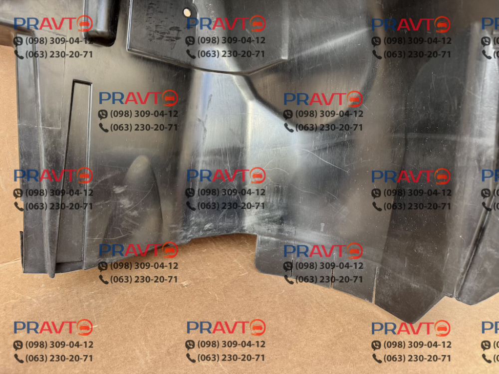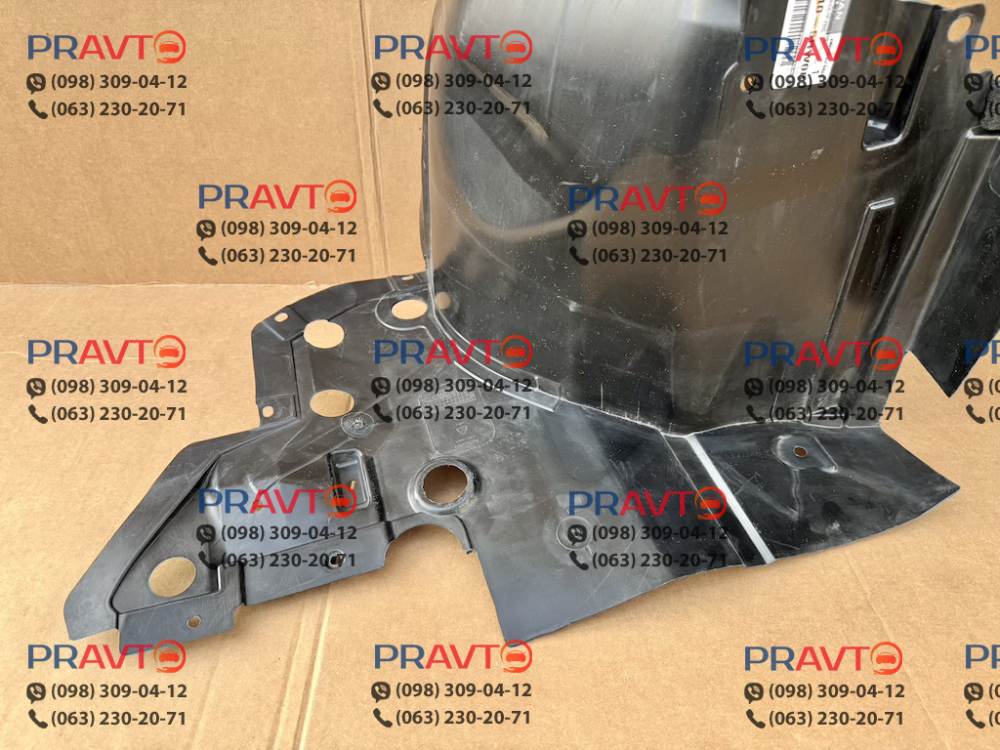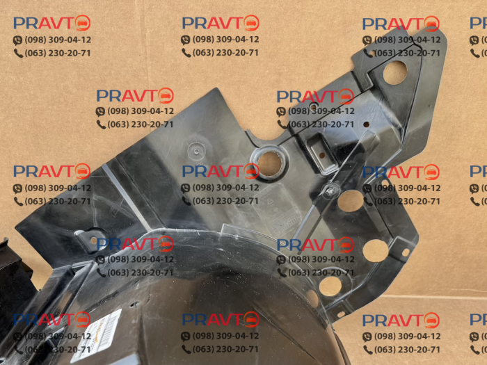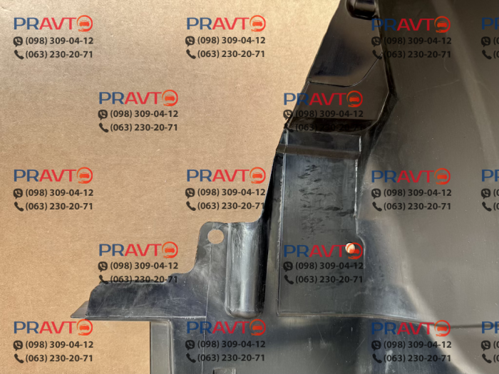 Заводський підкрилок точно повторює лінії кузова та має всі необхідні ребра жорсткості, що гарантує надійну фіксацію без зазорів. Усі монтажні точки збігаються з кріпленнями на кузові, тому встановлення не викликає труднощів — деталь стає на місце без натягу чи деформацій.