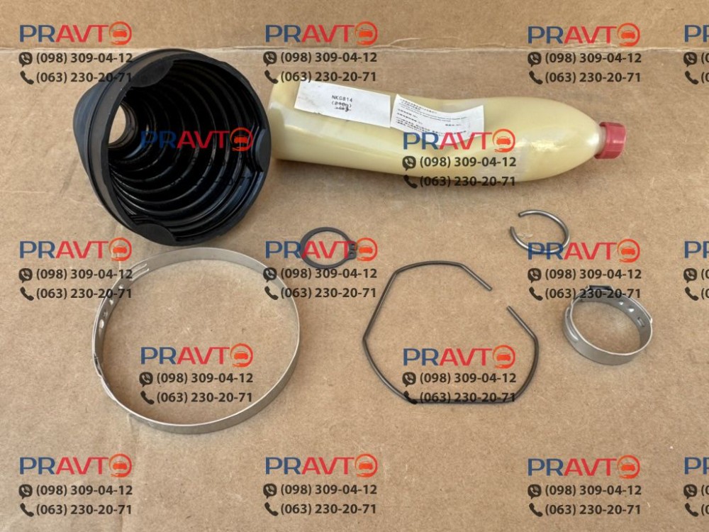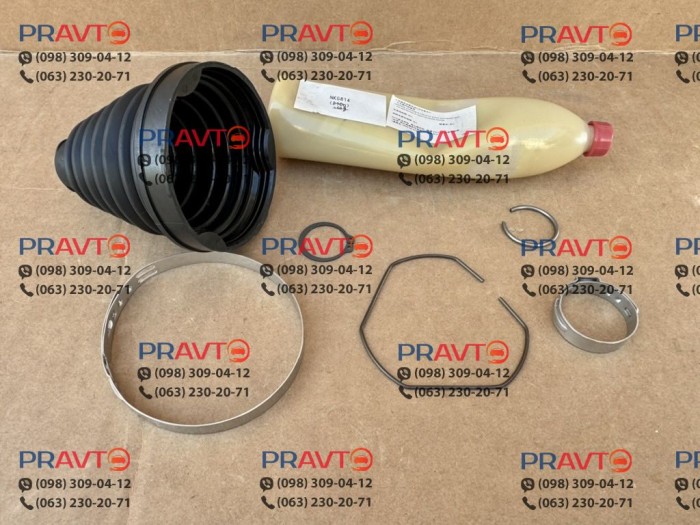 Оригінальний пильовик постачається у комплекті з усіма необхідними елементами: заводське мастило, сталеві хомути та стопорні кільця входять до набору. Це дозволяє швидко та безпечно провести заміну, не підбираючи окремі деталі.
