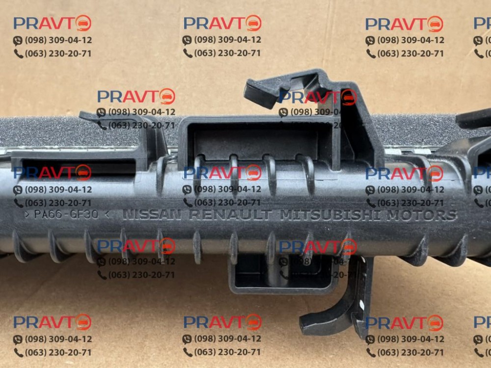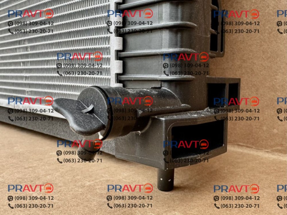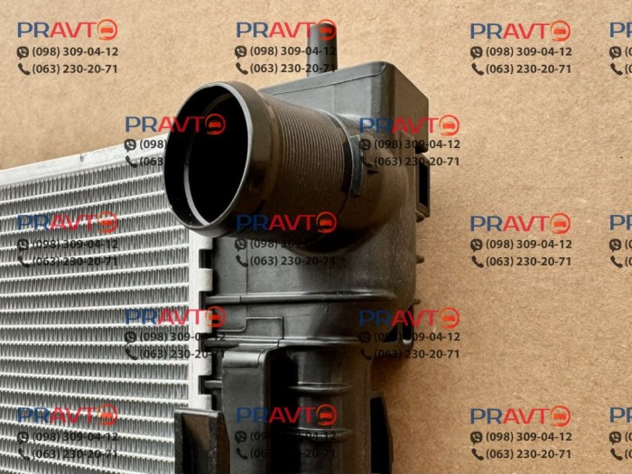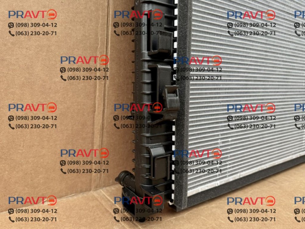 Бокові бачки радіатора виготовлені з міцного матеріалу PA66-GF30 — технічного поліаміду з додаванням 30% скловолокна. Він стійкий до деформації, витримує перепади температур і зберігає герметичність навіть під час тривалої експлуатації. Такий матеріал широко використовується в оригінальних деталях завдяки своїй надійності та довговічності.