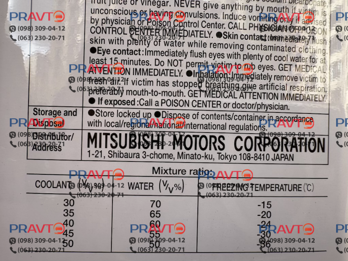 Оригинальный концентрат Mitsubishi SLLC — отличный выбор для тех, кто ценит надёжность, планирует долговременную защиту двигателя и сам готовить смесь с дистиллированной водой. Такой подход позволяет адаптировать охлаждающую жидкость под конкретные климатические условия и требования эксплуатации.