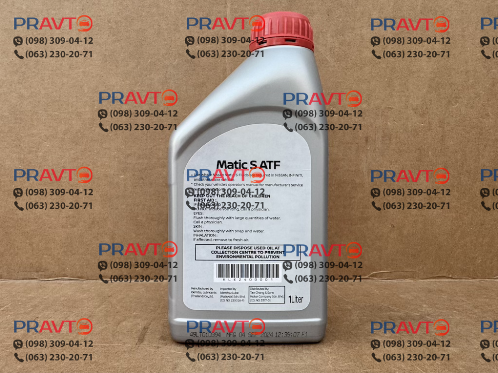 У магазині ПРАВТО ви можете придбати оригінальну трансмісійну оливу Nissan ATF Matic S об’ємом 1 літр з швидкою доставкою по всій Україні. В наявності лише перевірені товари зі складів. Ознайомтесь також з іншими оливами та рідинами для Nissan у каталозі PRAVTO.