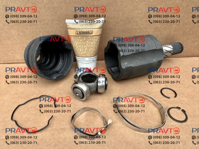 Внутрішній ШРУС FEBEST постачається в комплекті з пильником, фірмовим мастилом і хомутами. Це дозволяє виконати заміну відразу після покупки без додаткових витрат на витратні матеріали.