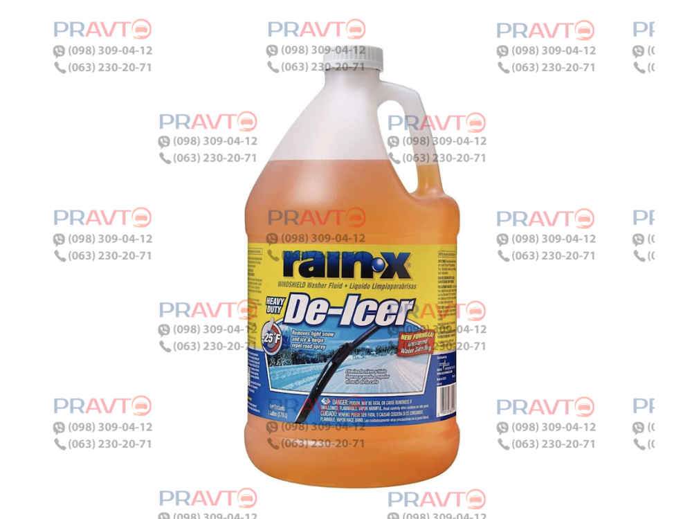 Зимова рідина Rain-X De-Icer — це один із найпопулярніших омивачів у США, розрахований на екстремальні морози до –32 °C. Виробляється брендом RAIN-X, відомим своїми технологіями захисту скла та водовідштовхувальним ефектом.